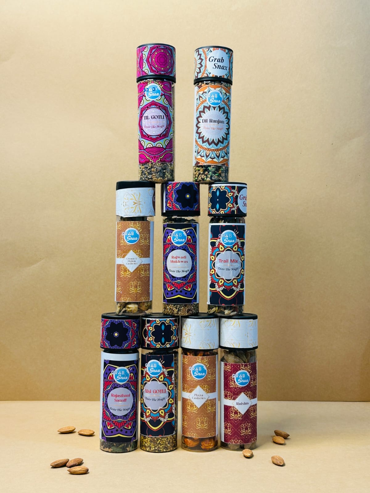At Grabsnax , we bring you a delightful fusion of tradition and taste through our premium range of Mukhwas, Dry Fruits, Makhana, Chocolates, and Gifting Hampers. Whether it's a daily treat or a thoughtful gift, our products are crafted to add joy and flavor to every moment. Quality, freshness, and a touch of love—that’s the Grabsnax promise.